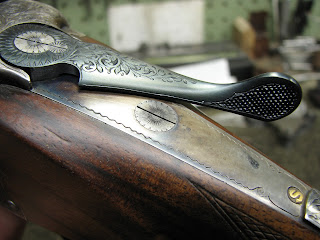 Here is a Lebeau-Courally BLE in 16 gauge that suffered more than a few problems. Both hammers had failed, one completely and the other cracked completely through the pivot hole. All of the screw slots had suffered at the hands of the last individual who had attempted repairs on the gun. They also beat the snot out of the sear and hammer pivot pins, which originally had polished, concave ends. After disassembly and a thorough inspection of the damage, the lengthy journey of correctly repairing everything began.